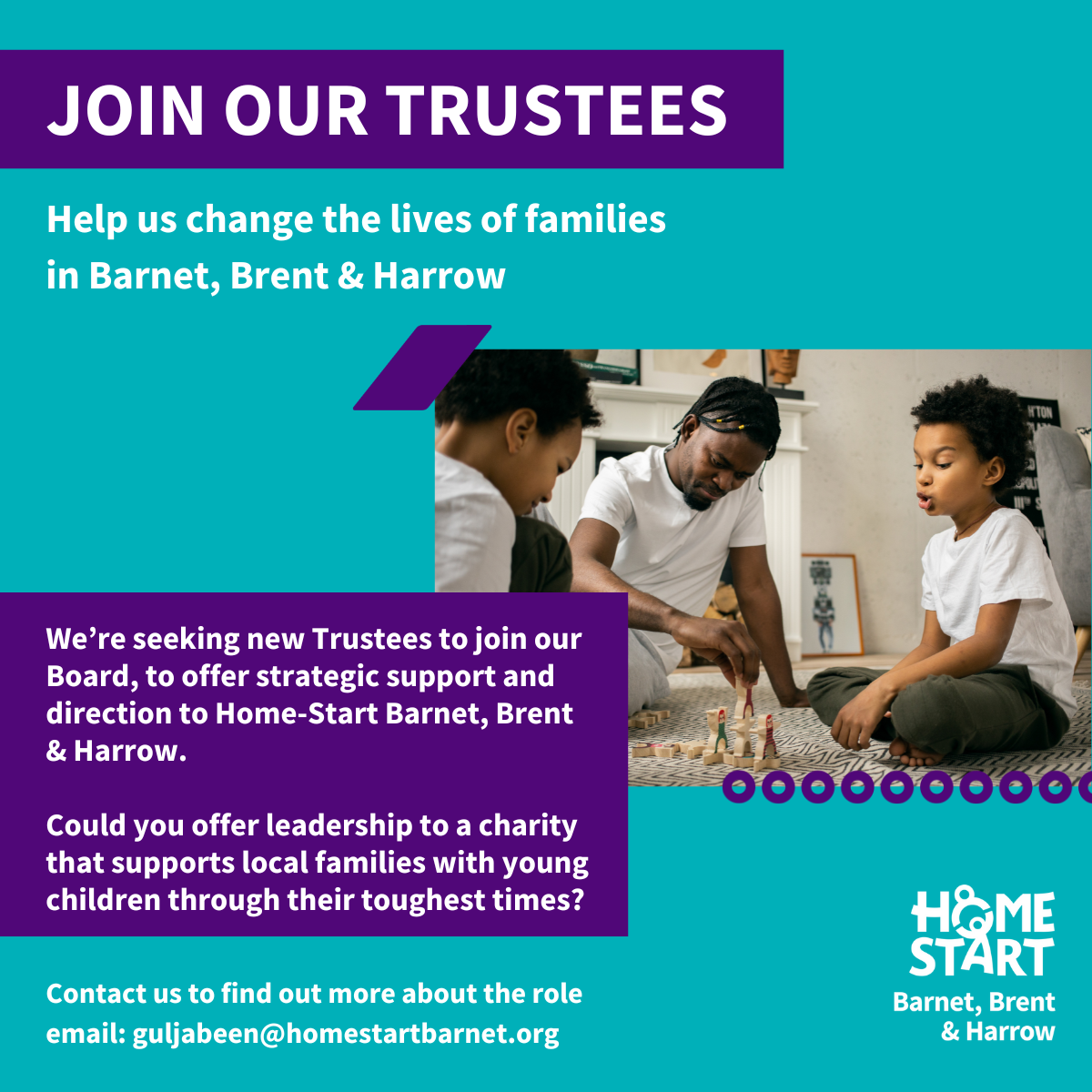 Home‑Start Barnet, Brent & Harrow is seeking new Trustees to help support families with young children.